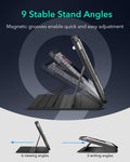 Ultra-Stable Stand: wide support brackets magnetically lock into grooves in the base, giving it superior stability, even when using your iPad on your lap