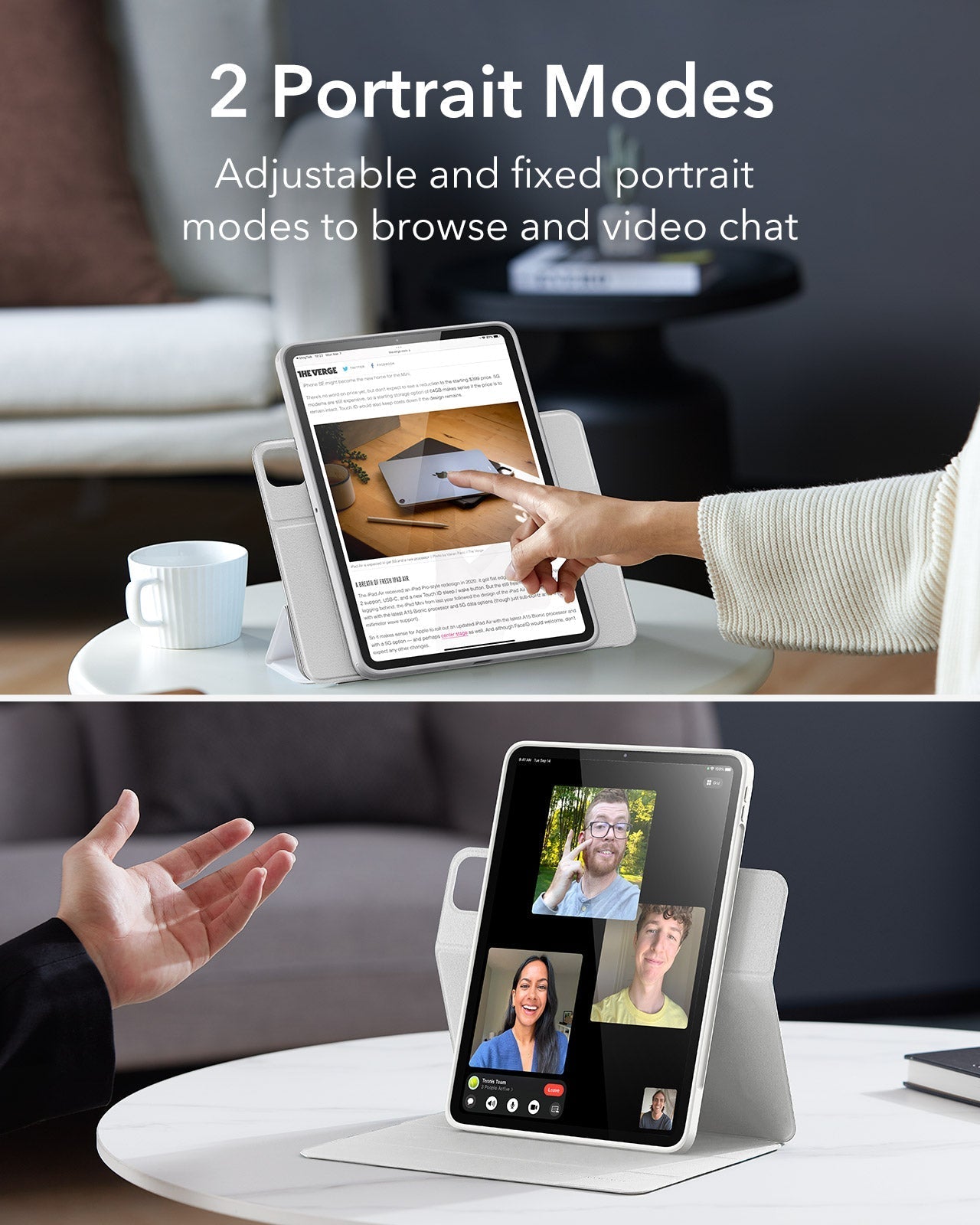 Yes, you can adjust your iPad to different angles in landscape for watching videos or portrait for FaceTiming and browsing.