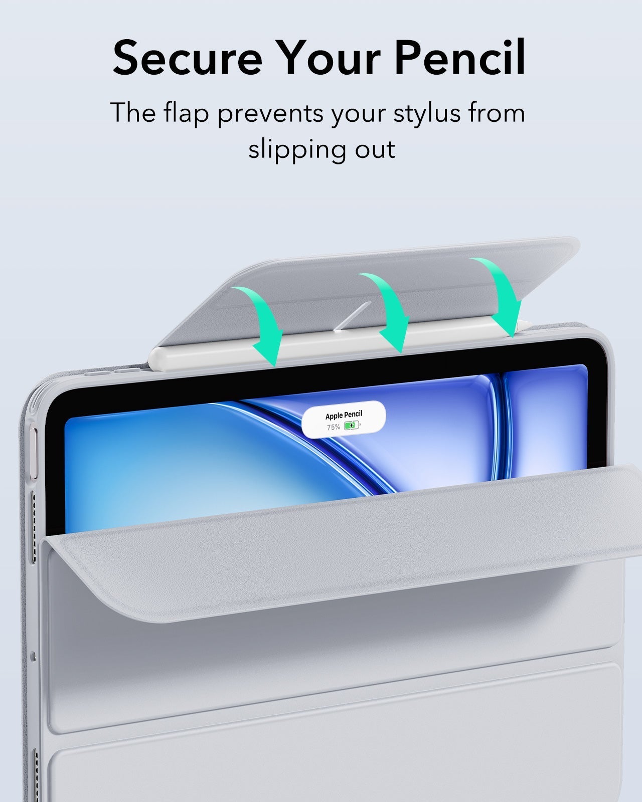 Supports Pencil Pro and Pencil (USB-C): this iPad case is fully compatible with Apple Pencil Pro and Apple Pencil (USB-C), featuring a recessed side groove for magnetic charging and a clasp to securely hold your stylus