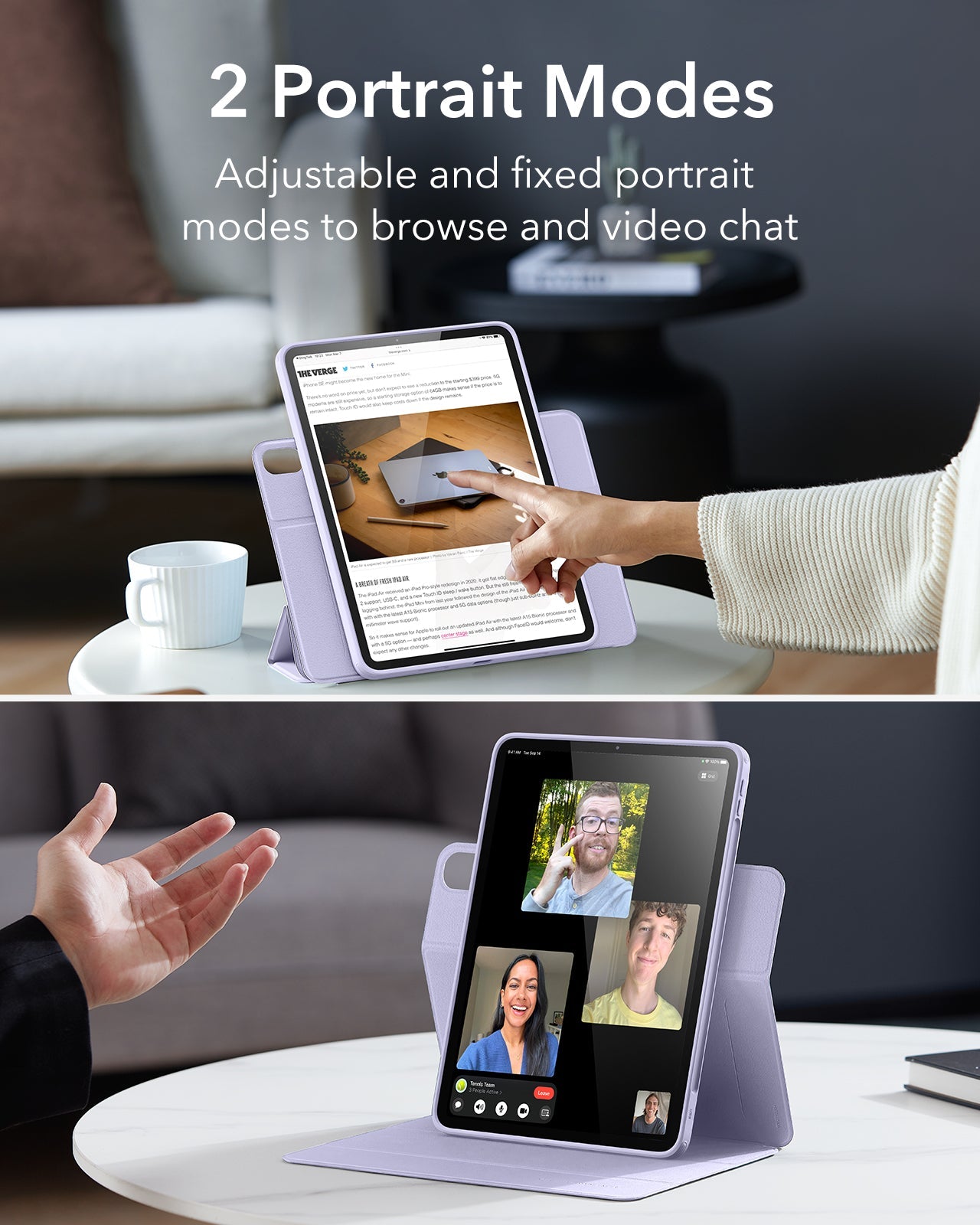 Yes, you can adjust your iPad to different angles in landscape for watching videos or portrait for FaceTiming and browsing.