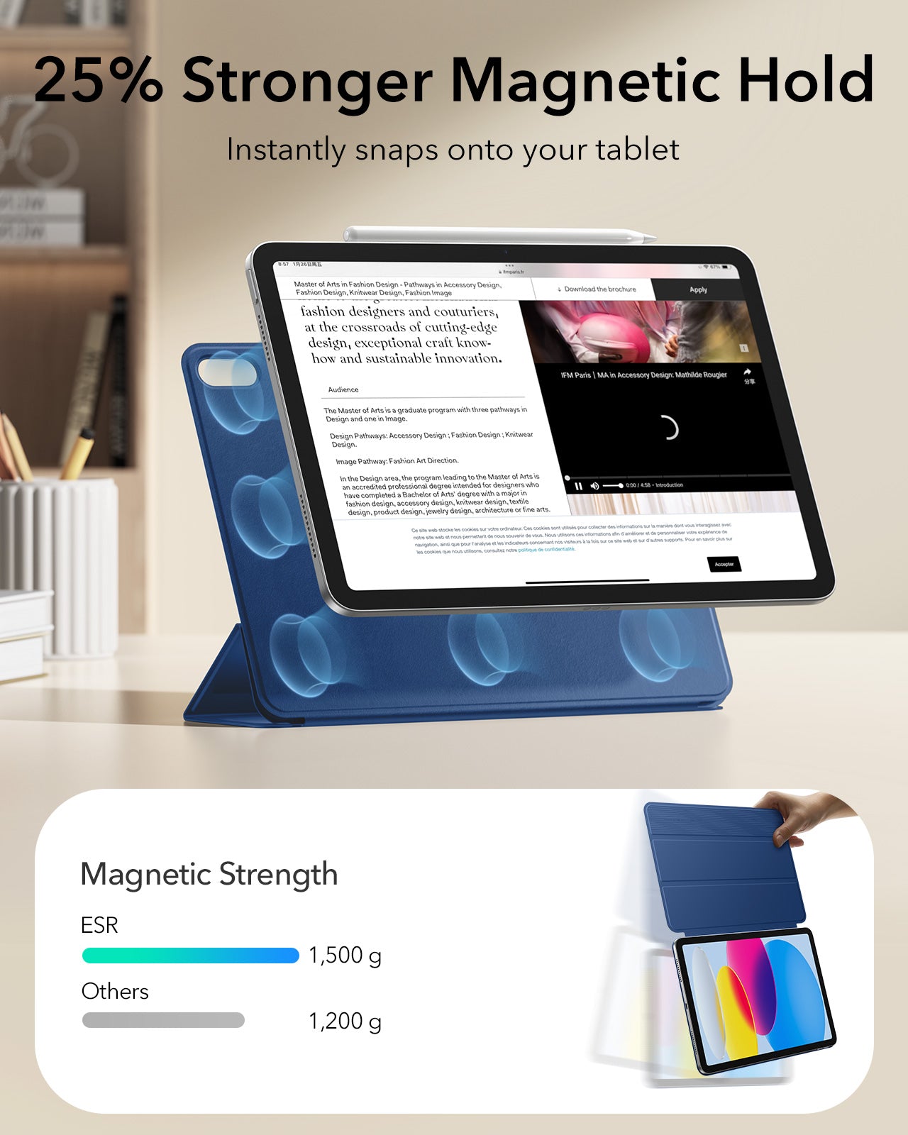 Ultra-Stable Stand: the magnetic trifold cover folds into a stable stand for viewing or writing, offering suitable angles for watching shows or taking notes with your stylus