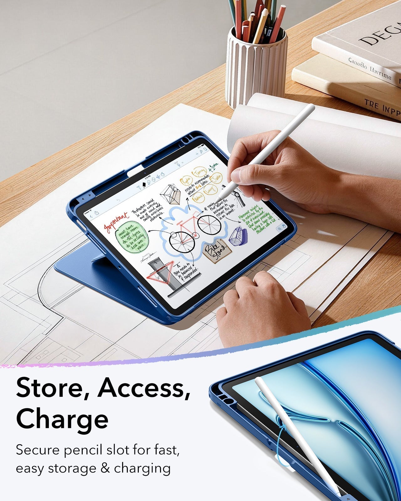 Never Lose Your Pencil: a built-in pencil slot securely holds and charges your Apple Pencil so it’s always ready to use
