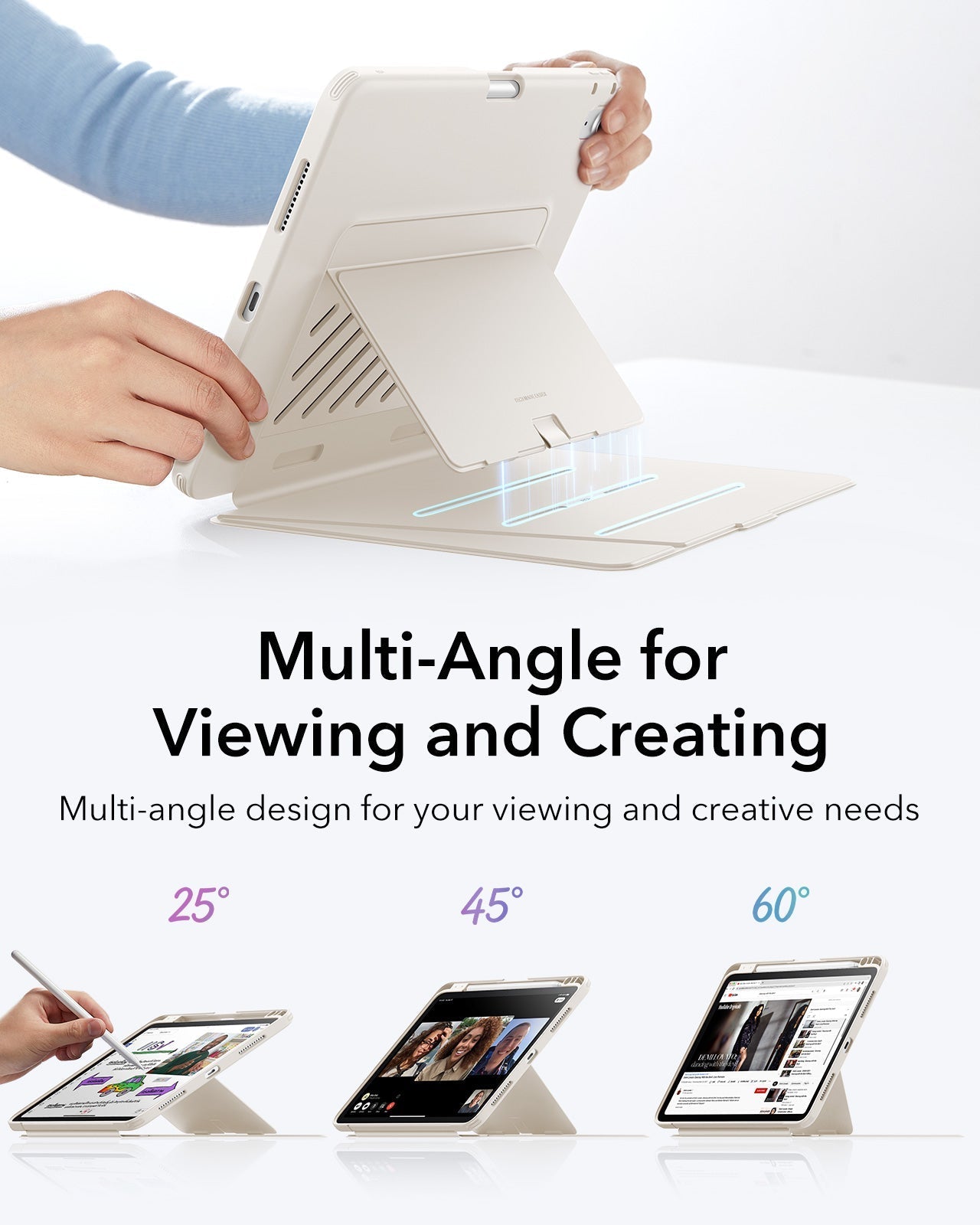 Multiple Use Modes: features 45° and 60° for viewing, 25° for writing, suitable for watching videos, working, FaceTiming, or sketching
